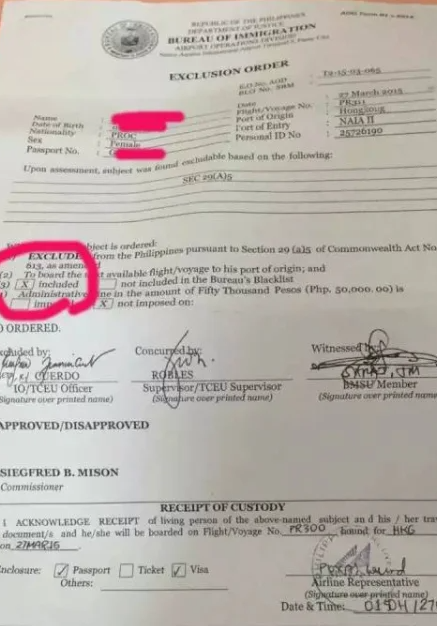 这种情况基本都是同名的黑名单,我们中国人在菲律宾很多,重名的也很多,如果同名黑名单很好处理的,需要去nbi开一个无犯罪证明就可以了,