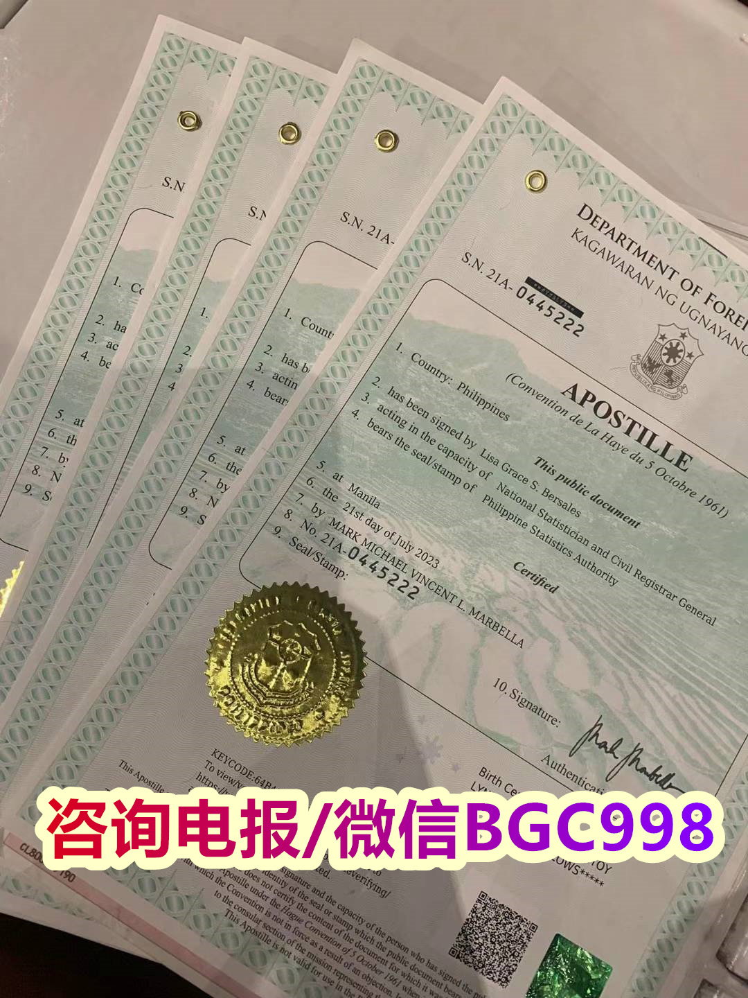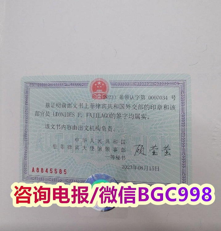 这个是 中国驻菲律宾领馆的文件认证贴纸,我们每个月都有大量的文件认证服务,需要菲律宾文件外交部认证和大使馆认证的可以直接咨询我们的业务请咨询微信BGC998 电报@BGC998