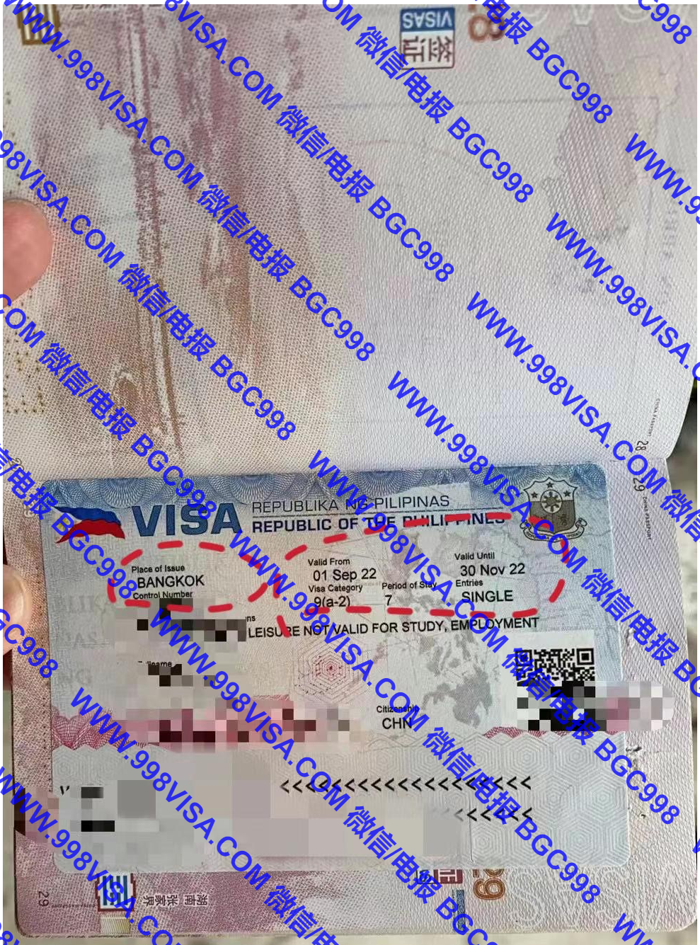 这是客人拿到的贴签证,菲律宾入境签证 泰国曼谷签发