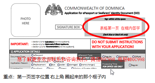 签字位置看样本已经给你标出来. 申请表签字完成后连同护照原件和入籍证书原件(orignal Certificate of Naturalization)一起提交给我. (文件 交付地址:可以在 国内 香港 菲律宾 都可以)