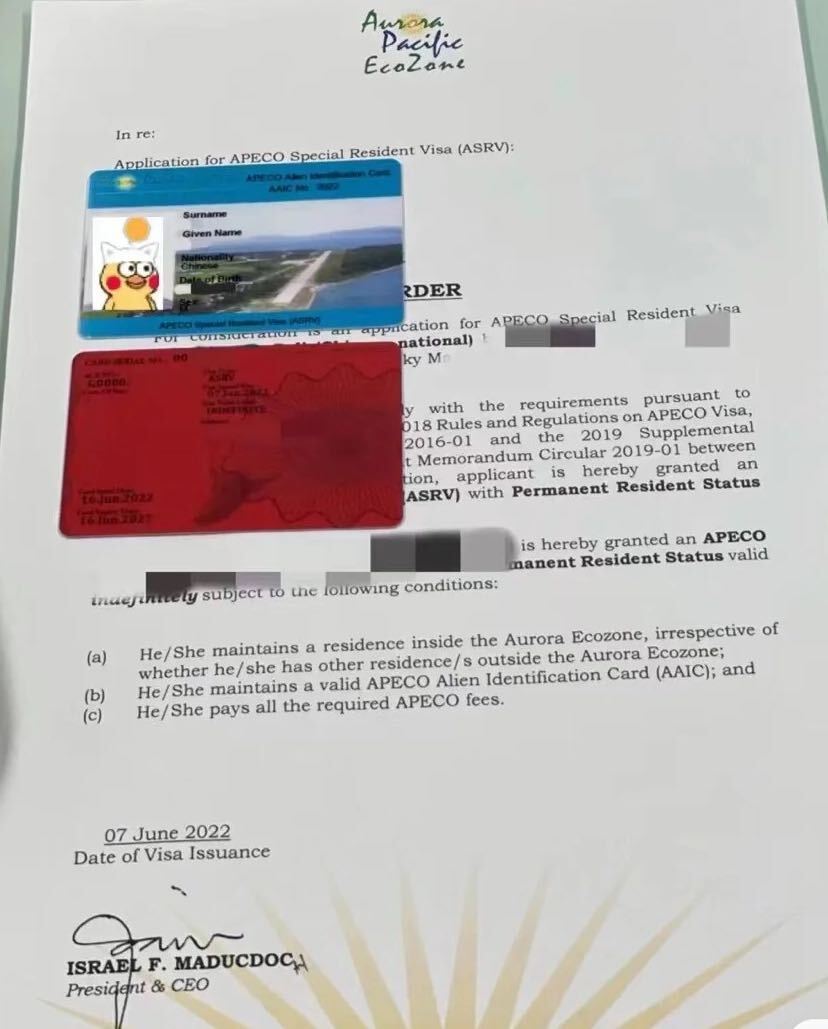 ASRV基础申请条件(人在菲律宾): 菲律宾经济特区捐赠费: A)户主年龄情况 户主情况 :户主满18周岁以上1、在菲律宾直接申请需交35000美金捐赠费用,此款为捐赠,申请通过后不可退还。 B)政府申请费用: 申请费: 1、主申请人申请费用:5300美金2、3000美金/每位附属申请人 C)管理费和维护费用 移民局外国人居住身份证 I-CARD卡使用年限(5年)换卡费用约 60 美金/每人, 每年需向APECO部门交会员年费 户主:240 美金 附属人24 美金: 每年需向移民局办理常年报道(ANNUAL REPORT) 310 比索/人/年。 D)我们全程服务费:4000美金/户。 温馨提醒: 1、以上一旦申请通过后美金完全不可退还,已经捐赠给菲律宾经济特区做建设了。假若没通过捐款可一次性立刻全额退回。 2、本捐赠费用附属申请人上限为3人 3、 本项目捐赠款项和申请费用均需我司前往代缴,且一次性缴纳,先缴费后申请批文,不管境内境外申请方式都是需要缴费到我们代缴,项目方目前不接受个人直接申请。 4、 整套完整手续 包含 护照贴永居的签证纸,移民局IC防伪身份证(红卡),移民局批文,经济特区批文,经济特区居民身份证。 ASRV 或者 ASIV ADV 的办理所需资料: 1)所有申请人护照首页扫描 2)结婚公证认证(配偶随行申请需要提供) 3)出生公证认证(孩子随行申请需要提供) 4) 所有申请人彩色白底照片1*1和2*2 各12张(可提供数码底片给我们制作) 5)满18周岁的申请人需要办理菲律宾国调局无犯罪NBI证明(入境菲律宾后办理) 另:如有在办理手续过程中产生签证延期费/移民局罚款费用另行收取。 人在菲律宾申请办理全流程: 1、 支付全部款项(款项只能美金现金支付) 2、提交特区申请 3、特区批文和特区身份证 4、移民局批身份证和永居签证 5、领取特区身份证和移民局身份证完成所有程序。
