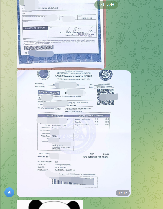 客人购买的汽车没有解押,在银行和LTO系统文件上都还存在抵押状态,因此文件不能用于过户,而且第一任车主给的证件已经过期,因此我们帮忙协调 索取汽车解押文件以及 车主资料,因为车主回复很慢,拖了接近1-2个月才把文件给齐全,菲律宾就是这样,本地人买车给你完后能联系上已经是万幸了,基本上他们使用小号买车出去后就消失了。