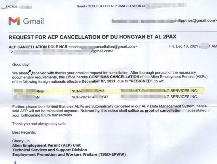 劳工部DOL:AEP 员工登记 员工开除登记 海外员工登记 AEP取消 等