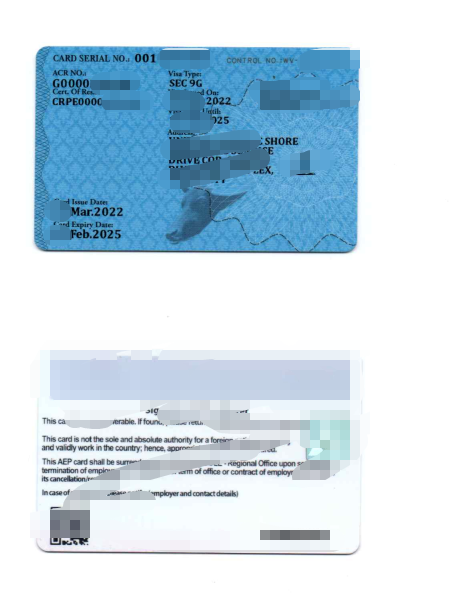 移民身份证和 9G AEP外国人劳工许可~ 正规 真实有效