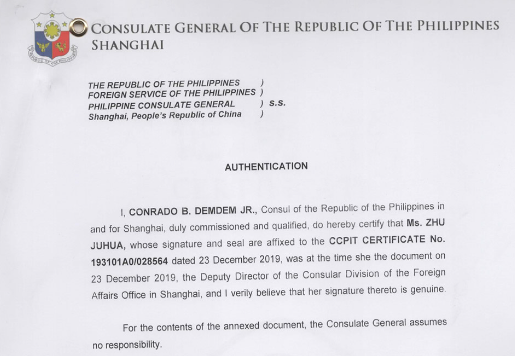 菲律宾大使馆认证、菲律宾领事馆认证一般需要2周半左右的时间,菲律宾使馆认证的具体流程:文件经贸促会(商会)或其它公证机构认证后再由外交部领事司认证处认证,最后再送其驻华使馆认证,经常办理的文件有出口销售证明、代理协议、授权书、ISO证书、各类出口文件、个人民事材料等,如需代办菲律宾驻华使馆双认证可以电话咨询我们客服。
