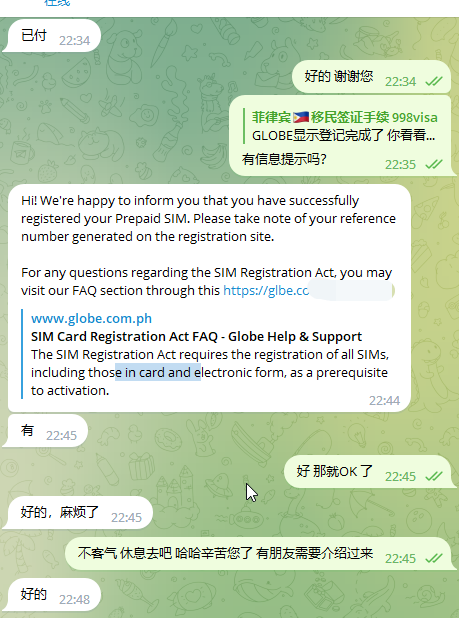 菲律宾手机实名认证需要提供什么材料呢?GLOBE实名注册需要提供:1 手机号码2 手机号码接受短信验证 告知我们3 姓名拼音 国籍 性别 出生年月日4 护照首页照片5 ICARD正反面照片6 备用手机号码 EMAIL 地址7 精准地址 房号 楼名 路面 村名 省份8 地址证明(水电费缴费单,没有我们处理)9 自拍照(手机自拍一张人头照)