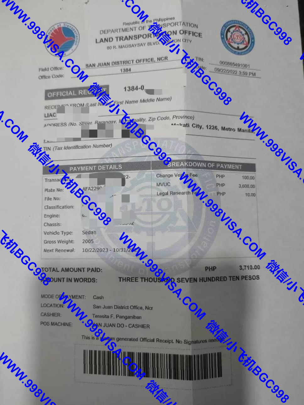 6 LTO小费 500左右以上都是正规政府收费 我们按业务需求帮您制定预约办理 全程有专员陪同指导直到拿到完整手续收取少量的服务费。菲律宾汽车过户 年检 查询 服务 请咨询微信BGC998 小飞机@BGC998