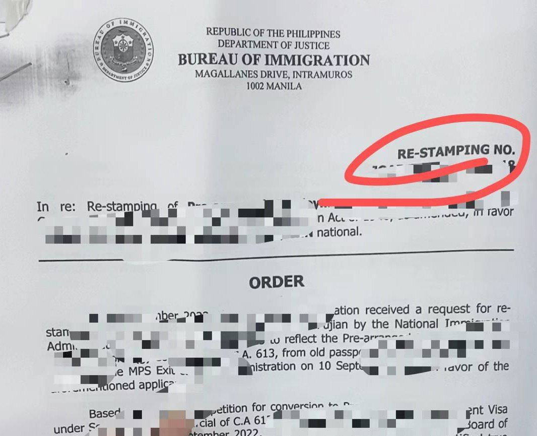 近期很多人因为移民局的重新盖章要求没有办法顺利出入境菲律宾,在什么情况下需要重新盖章呢?一般来说出入境需要材料是这样的 1 有效的签证批文ORDER 2有效的ICARD ACR 3护照上有签证盖章或者签证贴纸。 不少人因为护照换了 所以没有新的盖住 出入境没有带上新旧护照 因此会被刁难。。。 这样的情况下就被要求重新再护照上盖章了。