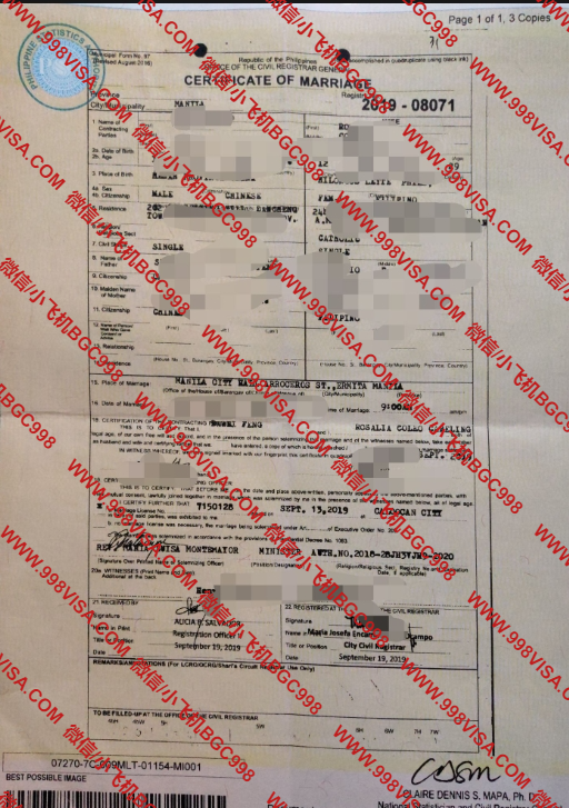 急速办理菲律宾登记结婚,1000%合法有效有底!! 费用便宜 速度快 材料 极简!!独家关系!!!