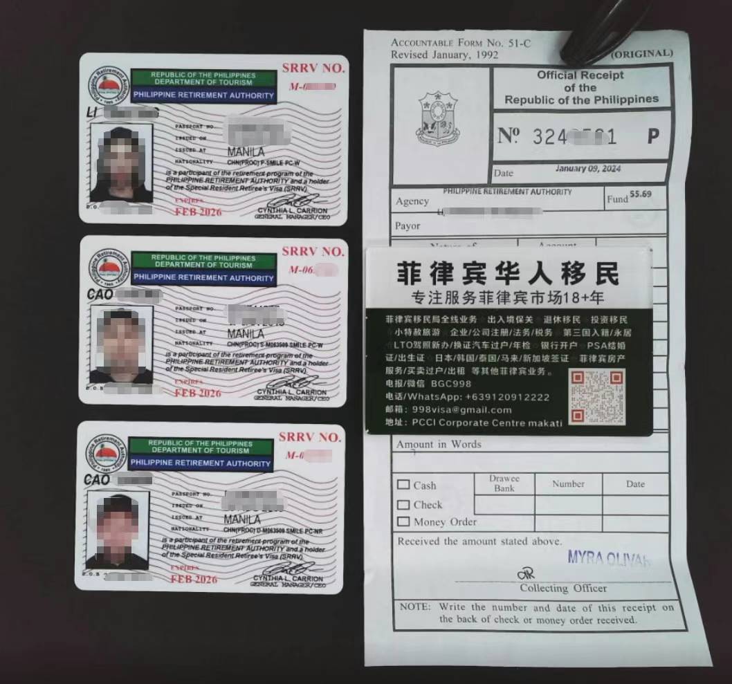 服务费用可以完成手续后再支付,可支付等额的 菲币/美金现金都可以。服务包括:国内文件公证认证指导/代办:申请期间出入境机场接送:手机卡/流量卡配套:医院预约 带领体检:酒店代预定(如果需要):移民局全程送签 处理签证:退休署陪同送件取件代办:客人外岛旅游安排(如果需要):
