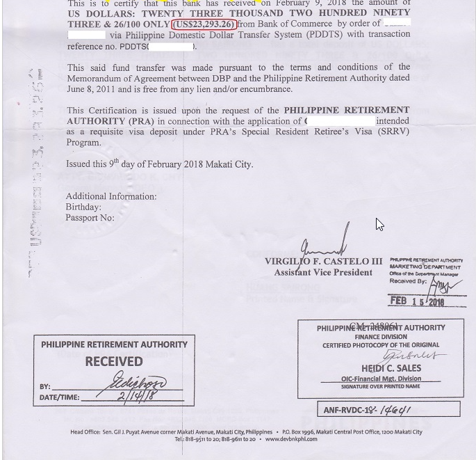 菲律宾退休移民(SRRV)主申请人变更的案例相对很少遇到,客人因为配偶为主申请人,由于年迈去世, 需要变更主申请人,同时自己和配偶菲律宾绿卡已经到期,所以要续缴年费换新的菲律宾绿卡才能办理新的业务,配偶过世后护照也已经注销失效,退休署也是没有这方面的经验所以需要特案处理。
