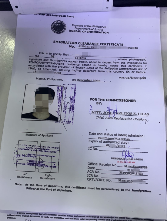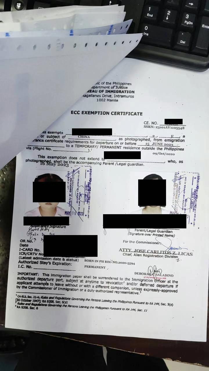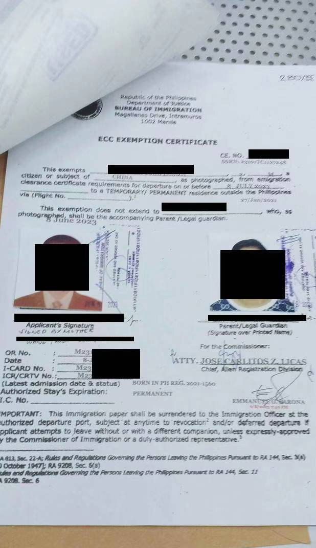 这个是菲律宾父母生的小孩子出境的ECC
