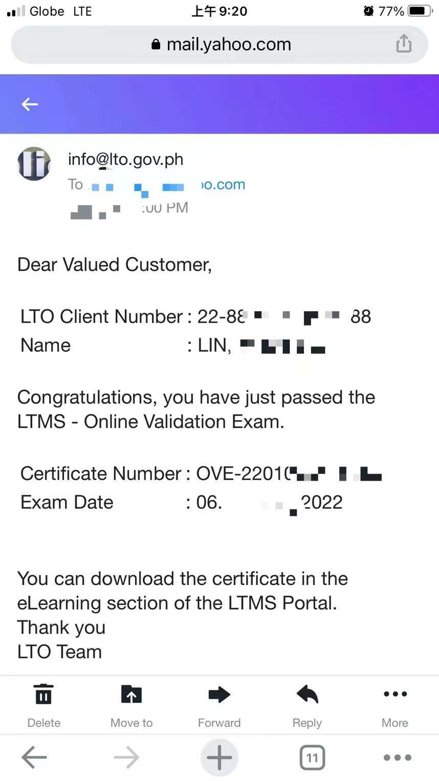 LTO 考试通过后官方邮件通知