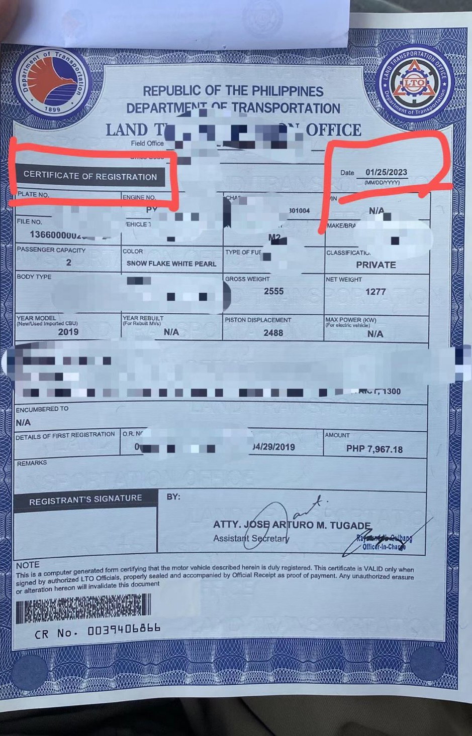 過程: 客户准备好上述文件材料的2,3,4,5 交付我們,我們預約車管所時間 安排車去指定地點 採集車輛信息車架號發動機號照片后就可以走。後面的全部事宜我們處理,直到您拿到新的or cr原件,完成過戶手續。想了解更多最新信息欢迎联系和咨询我们,微信:BGC998 电报@BGC998 Whats app:+63 912-0912-222 电话:0912-0912-222 优先使用TG免验证,咨询请主动告知咨询项目,菲律宾MAKATI 实体公司,客户 隐私保护 安全 可靠,可以安排工作人员上门取件或前往我们办公室提交办理业务。
