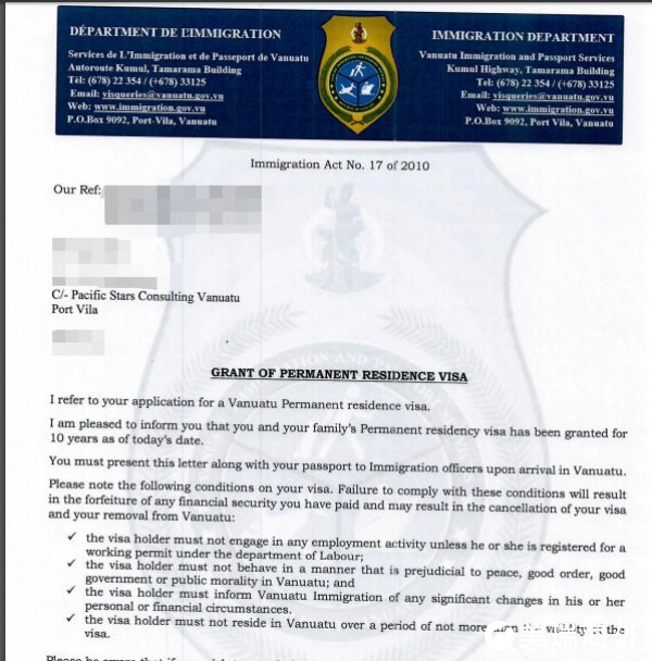 瓦努阿图绿卡(永居)8.8万人民币!瓦努阿图护照20万美元!瓦努阿图内政部长于2011年9月7日根据瓦努阿图2010年移民条例第十七章赋与的权力制定2011年移民法行政命令180号。于2011年9月13日刊宪并正式生效。
