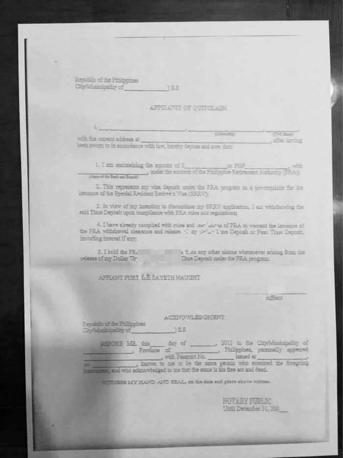 很多客户申请了菲律宾退休移民,是为了跳板第三国、入读国际学校、移民香港、参加华侨生联考等,但是在目的已经达到了,菲律宾SRRV签证已经失去意义了,就想取消这个永居签证,拿回存款。下面就介绍如何取消菲律宾退休移民签证。