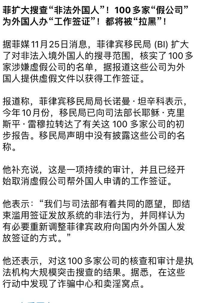 菲律宾移民局的打假风暴来袭!这被吊销的528份工作签证只是开始。
