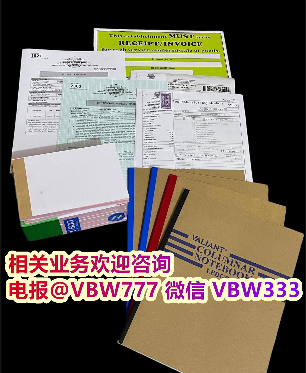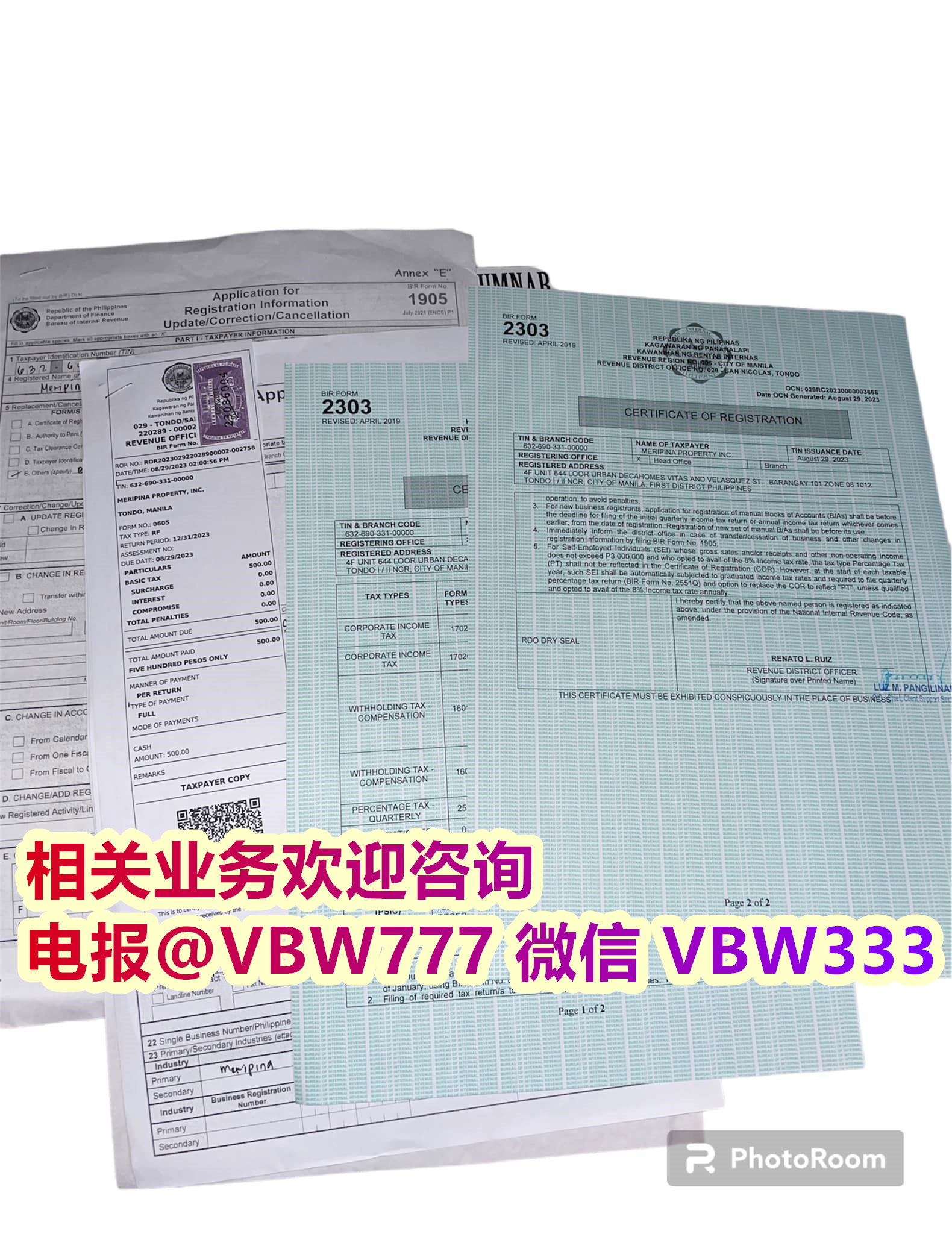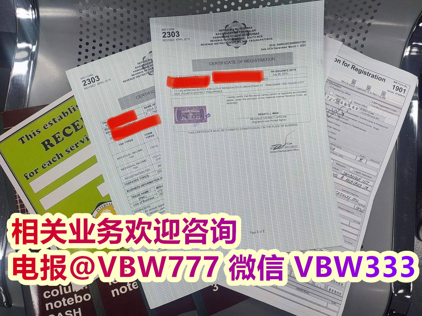 在国税局 (BIR) 申请注册证书 (COR) 和 TIN,并申请公司正式收据、销售发票和其他商业发票。