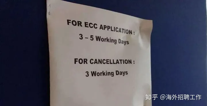 填好表后交到ECC办理窗口,然后拿着窗口给的交费单,到缴费窗口交费。及全部手续办完后,会拿到一张写有ECC证明领取日期的通知单。不加急的话,通常三到五个工作日可取。