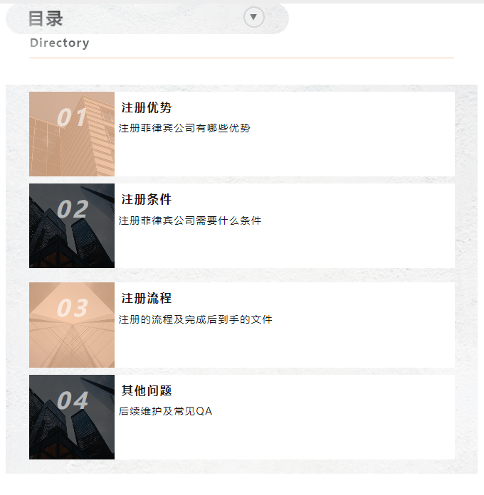 对注册区域总部和区域运营总部的财务要求则低于分公司和代表处,证券交易委员会更注重外籍企业是否有资格在菲律宾境内申请注册上述分支机构,因此申请者需要提交其所在国相当于菲律宾大使馆或菲律宾贸工部这类政府机关(参考市场监督管理部门的注册登记局)所出具的证明文件,以证明该外籍公司在亚太地区和其他国家已设立分公司或其他附属机构。如果您计划在菲律宾创业,创建公司 有需要税务规划 在菲律宾想找一家靠谱的全能服务公司来帮您解决各类市府文件问题?不妨联系我们998事务所,我们是一家专注于菲律宾本土企业服务和创业支撑的综合性服务企业(企业注册 税务服务 银行开户 知识产权 法律咨询 税务规划 会计审计 政府关系 移民 旅游 等菲律宾本土服务),无论您在菲律宾的生活工作有任何疑惑? 欢迎咨询我们 Telegram 电报 @VBW777 微信 VBW333 在菲超过20年相关服务经验,多家上市公司 多家世界五百强企业 指定服务商,是您在菲律宾不二选择!