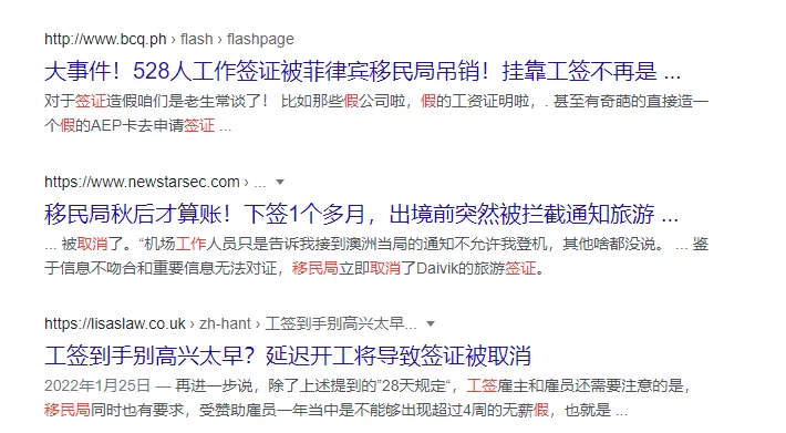 那些提供虚假或误导性文件的工作签证申请者将被拒签!