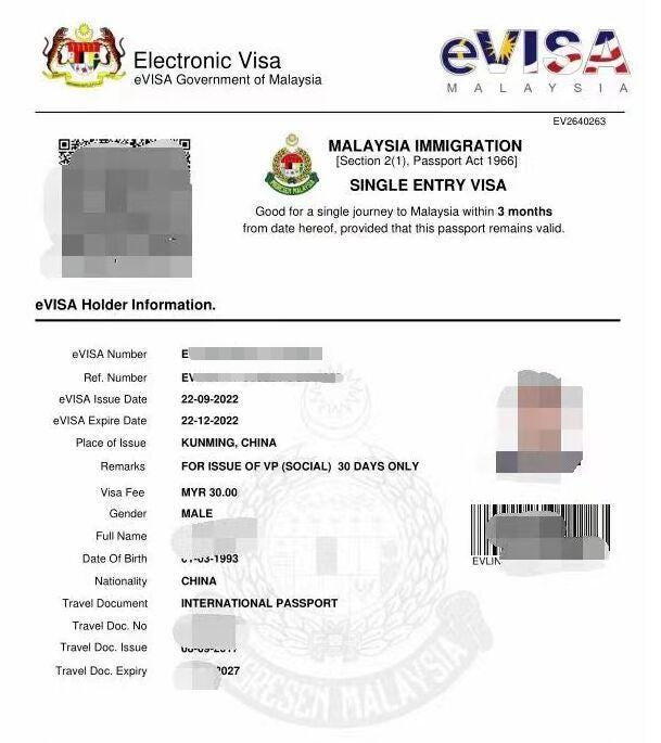 马来西亚电子包签(旅游商务同价,商务必须提供邀请函):