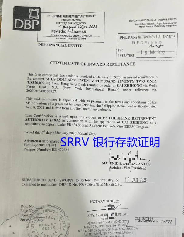首先需要把护照,SRRV卡和签证贴纸等原件,都交给菲律宾退休署,然后需要授权声明文件📄的认证,然后递交申请。等待退休署审核通过后,就可以取回存款保证金了。取消SRRV永居身份需要提前30天给菲律宾退休移民署邮寄一份书面通知📝,同时还要一并递交护照交给退休移民署,等候审批。SRRV身份成功注销后,退休移民署通知银行退回您的存款保证金,一般都是原路退回到你的汇账号👌,所以你要提供详细的账户信息📋,确保退款账户信息完整。 SRRV退款申请流程👇: - 菲律宾律师出具授权信,邮寄给主申请人,主申请人在公证处见证签名,公证内容就是在公证人员的见证下签署文件,做公证及双认证; - 将所有资料邮寄到菲律宾代办人去申请,1-2个月拿到转款信(批准信✅); - 拿到转款信之后,退休署会在1个月内将款转至主申请人指定账户;