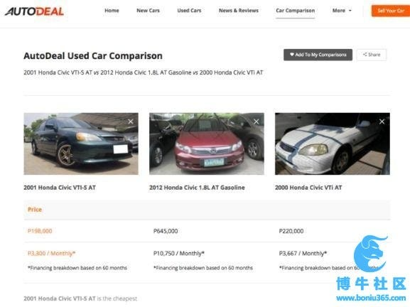 Philkotse.com还具有汽车比较功能,允许根据价格,每月付款,条件,里程和规格检查多达三辆车。