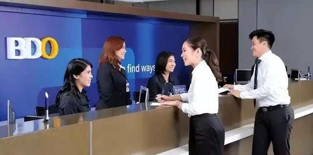 菲律宾金融银行(BDO Unibank)在个人贷款、商业贷款以及外汇上都有很成熟的解决方案,因此BDO银行成为了菲律宾本地人甚至是在菲律宾的外国人的开户首选。
