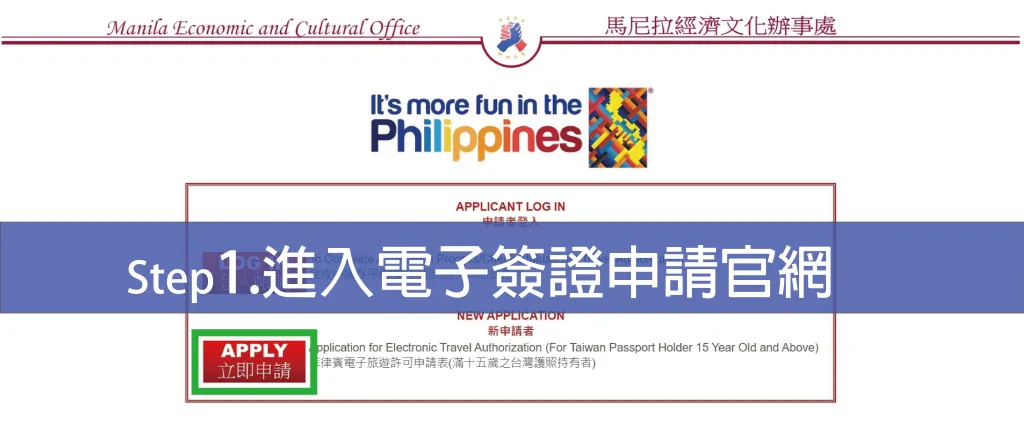 | 申請方式 | 網路線上申請 | 馬尼拉經濟文化辦事處 (台北、 |