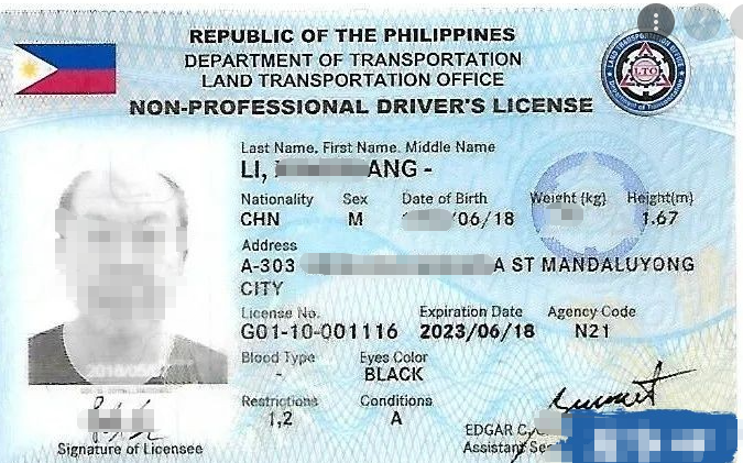 5年后(后面更新的有10年的)的生日那一天过期,所以只要套一个年份不一样 月份和日期一样的人即可。 这样你在LTO的系统检索 使用简单的短信查询方式 会回复有效期到某一年 某月 某日 然后那个 某月某日刚好就是你生日那一天,你觉得这个就是为你制作的真的驾照,很天真吧,这种生意大概就是菲律宾LTO内部人员和外面的中国贩子合伙做的