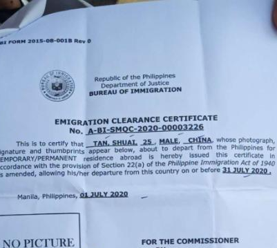 菲律宾移民局颁发的两种ecc清关出境的类型: