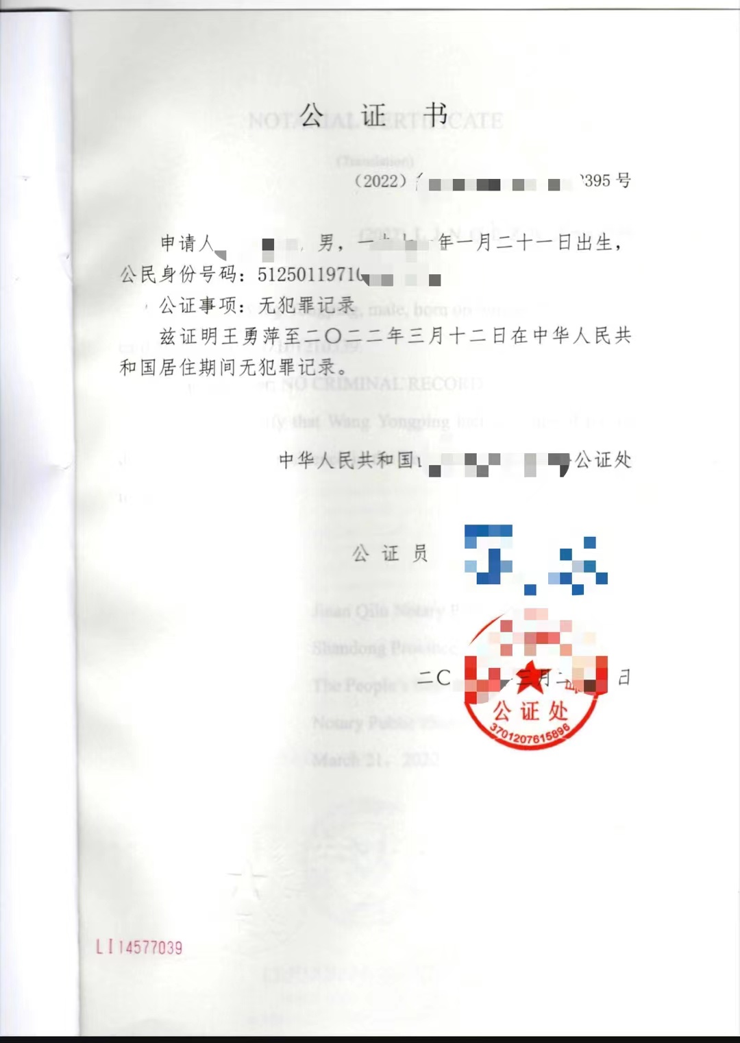 无犯罪记录公证是指公证处对申请人的无犯罪事实进行公证,依法对无犯罪记录证明的真实性进行公证,并出具无犯罪证明公证书或中外双语公证书,公证书可办理对应国家的无犯罪记录领事认证。外国人亦可在国内办理无犯罪记录公证或翻译公证。