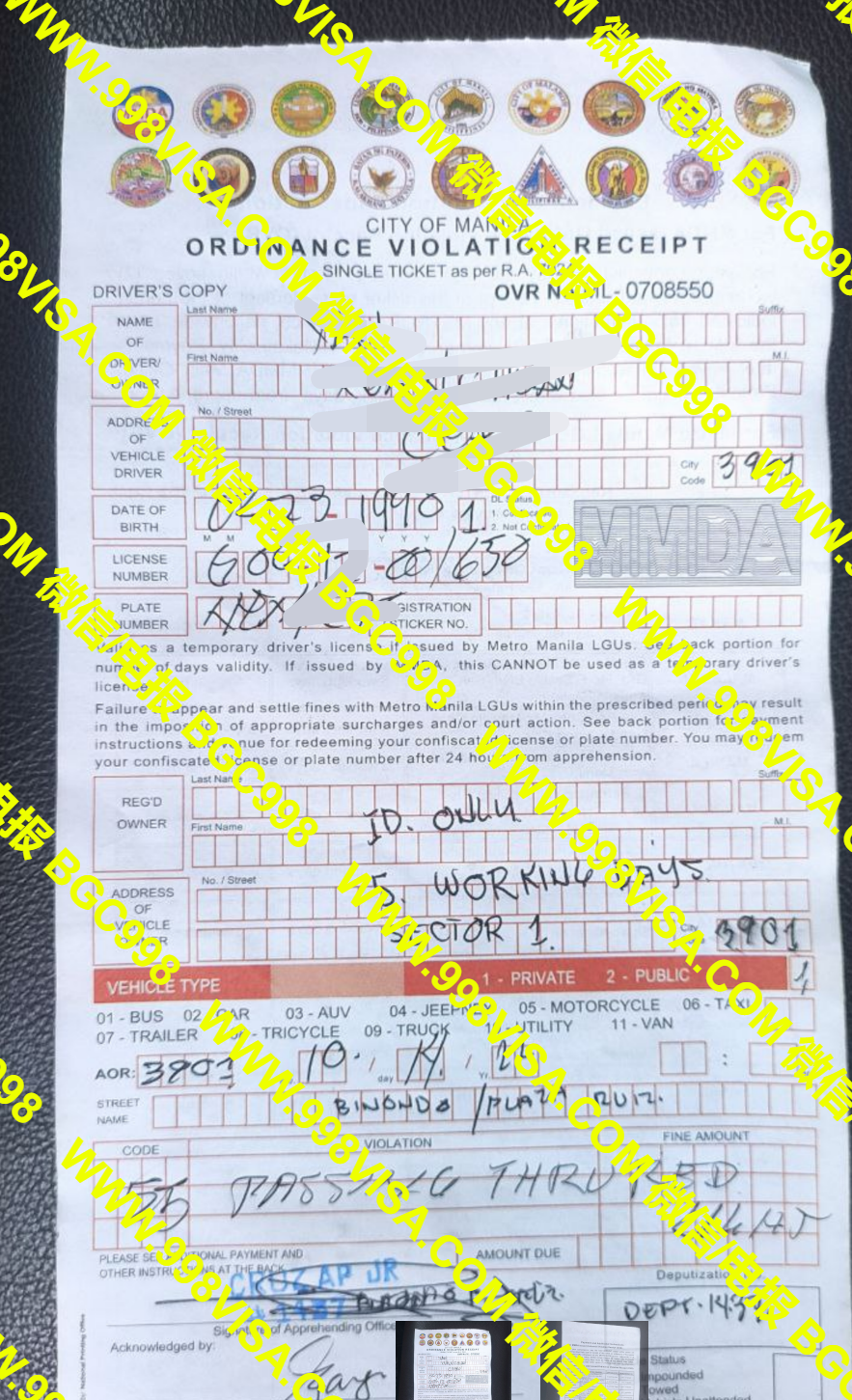 在菲律宾开车时常会遇到交警拦车或者因为违章被拦截检查,有些时候交警给你报价也是乱报为了你给他小费。这里整理一些常见的处罚费用,可以给您在菲律宾参考,菲律宾驾驶证办理 驾驶证更新 汽车过户 汽车年检 车牌丢失补办 旧车牌更换新车牌服务都可以联系我们 想了解更多最新信息欢迎联系和咨询我们,微信:BGC998 电报@BGC998 Whats app: 0912-0912-222 优先使用TG免验证,咨询请主动告知咨询项目,菲律宾MAKATI 实体公司,客户 隐私保护 安全 可靠,可以安排工作人员上门取件或前往我们办公室提交办理业务。