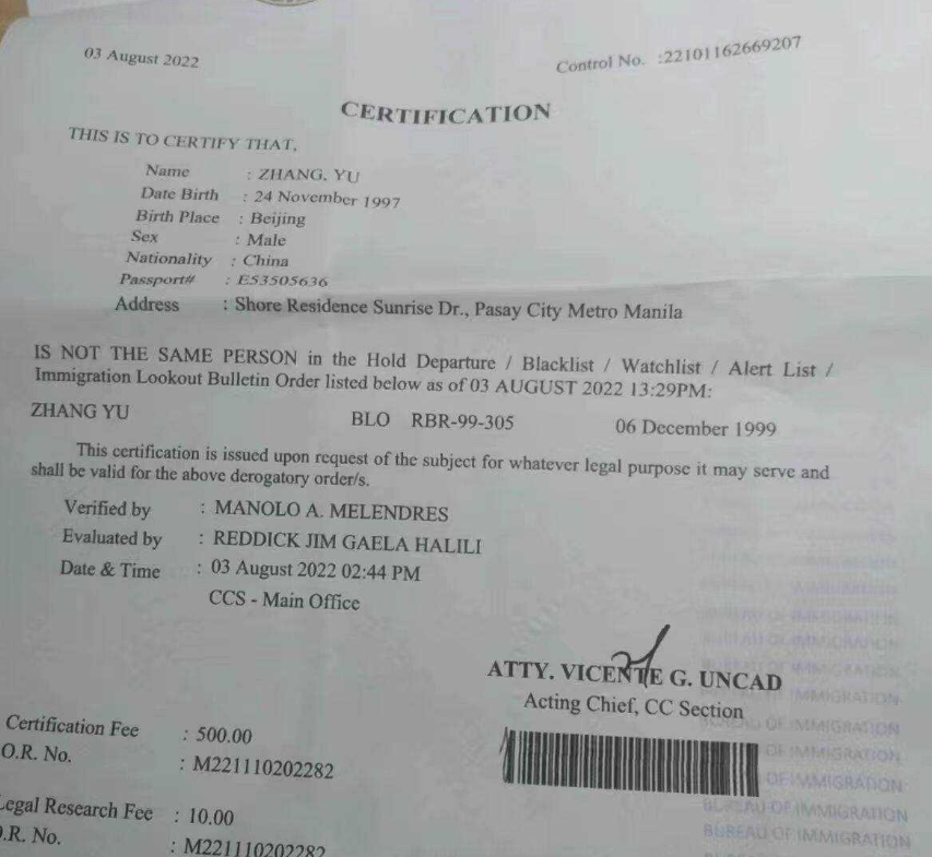 不知大家有无听说过菲律宾同名黑名单,同名黑名单的意思就是自己的名字和菲律宾黑名单里的人同名了,有关部门或者机场海关以为你就是那个黑名单人员,导致被拦截或者被拘留。在处理这种情况的时候就需要办理这个NTSP手续,这个手续上文解释过,是非同一人证明。办理了这个手续,让别人知道你是因为名字相同了才会被误解的。办理NTSP手续就能解除一系列的误会。