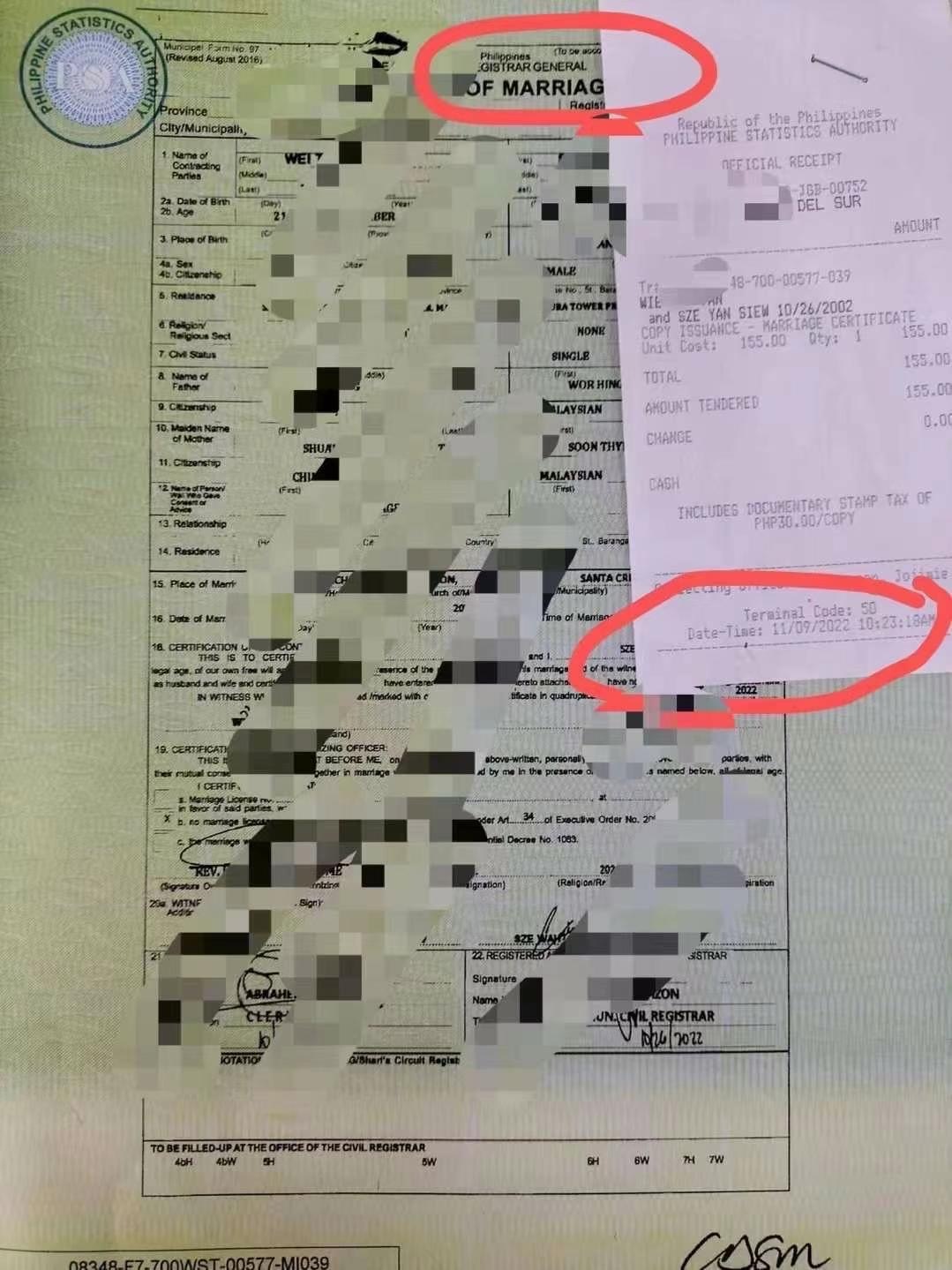 菲律宾登记结婚/結婚証PSA 快速服务