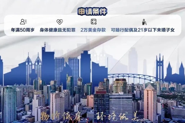 申请人要求:- 年满50岁,可携带配偶和21周岁以下未婚子女;- 所有申请人要求身体健康且无犯罪记录(18周岁以上申请人均需提供无犯罪证明)