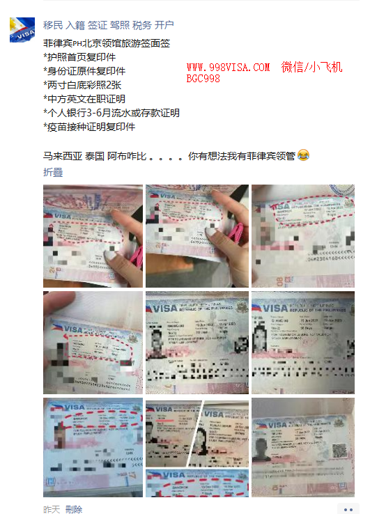 移民局全部业务:9A旅游签证 入境保关 机场捞人 出入境记录补录 特赦签证 13A结婚签证 TRV 9F 学生签证 9G工签办理,黑名单查询/清除 退休移民 投资移民 ASRV 工签降签 AEP办理 ACR I-CARD 更新 年检 补办 菲律宾遣返otl业务 菲律宾签证续签 逾期罚款处理 退休移民 投资移民 菲律宾各种签证查询 ECC清关 旅游签证延期 原有长期签证更换国籍 落地签证疑难杂症 SRRV更新 SRRV取消 MCL21特赦交通部LTO:汽车年检 车牌 OR/CR补办 和 汽车过户 驾驶证 驾驶证新办 驾驶证更新 中国驾照换菲律宾驾驶证 CDE考试包过 等房产局:房产入户/过户 房产贷款 房产抵押/解除抵押 地基税 等外交部DFA:菲律宾护照 菲律宾文件认证 菲律宾海外领馆文件认证等税务局BIR:企业所得税 企业审计 个人所得税 发票印制 税卡TIN 等市政府CH:建筑许可 卫生许可 营业许可 装修许可 消防许可 地基税 等工贸部SEC/DTI:公司注册 公司变更 等劳工部DOL:AEP 员工登记 员工开除登记 海外员工登记 AEP取消 等统计局PSA:菲律宾结婚登记 菲律宾出生登记 菲律宾死亡登记 菲律宾离婚登记 等第三国签证:菲律宾泰国签证 马来西亚办理泰国签证 马来西亚学生签证 马来西亚办菲律宾入境签证中国大使馆:护照申请 护照补发 护照更新 文件认证 赴华签证办理 在华签证延期 在华工作签证第三国籍:多米尼克 圣基茨 圣卢西亚 安提瓜和巴布 瓦如阿图 墨西哥 格林纳达 土耳其 瓦努阿图绿卡第三国籍配套:护照激活 税务登记 驾驶证 无犯罪证明 电话卡 银行开户 激活护照 地址证明 护照/挂失/损坏更新 等 (以上国家的都有)其他服务:NBI证明 FDA食药检局注册 IPO商标注册 商标专利转让/注册 BOQ防疫局证明 BOC海关清关 中国驾驶证更新 菲律宾在职证明 菲律宾银行贷款 菲律宾银行开户 国际驾驶证IDD 等华人移民:WWW.998VISA.COM WWW.BGCVISA.COM 微信 BGC998 电报 @BGC998 WHAT'S APP+63 9120912222