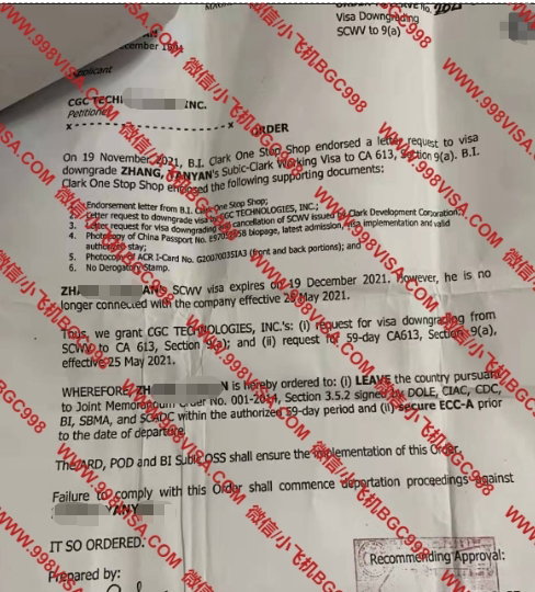We process:1. 9G Working Visa2. 13A / TRV Spousal Visa- married to a Filipino citizen3. Downgrading of Visa4. Tourist Visa Extension5. Alien Employment Permit (AEP) / Special Working Permit (SWP)6. Inclusion of dependent Spouse and unmarried child7. Emigration Clearance Certificate (ECC)8. Cancellation of Alien Employment Permit9. Cancellation of CEZA Working Visa (CWV)10. Cancellation of 9G Working Visa (9G)11. AEP card replacement (loss AEP)12. Quota Visa13. Overstay14. Lifting of Blacklist(BL) and Hold Departure Order (HDO)15. Order To Leave (OTL) & other Immigration related concern!For faster inquiries feel free to contact us: WeChat : BGC998 WhatsApp :+63-912-0912-222 Telegram :@BGC998 EMAIL: 998VISA@GMAIL.COM