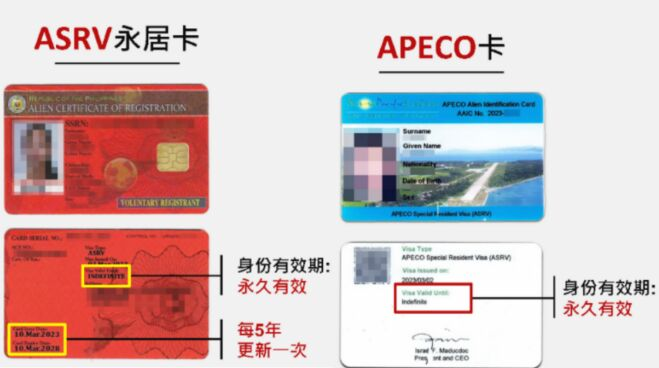 菲律宾asrv是一种特殊的永久居留签证,ASRV 的英文全称为 APECO Special Resident Visa,由菲律宾政府直属APECO经济区特批的永居签证, 获取方式是通过捐款获得永居身份终生使用,所以ASRV签证又有“小特赦签证”之称。