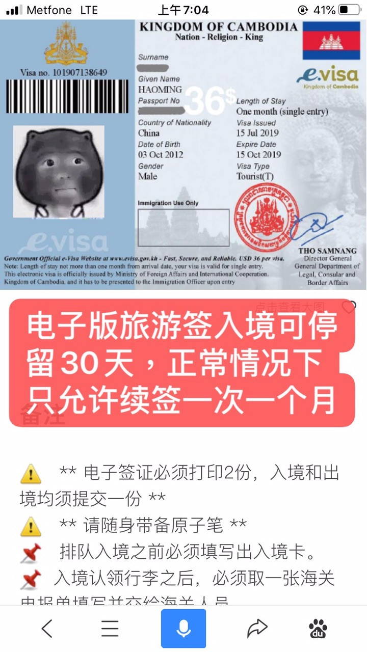 - 收到柬埔寨eVisa的确认。