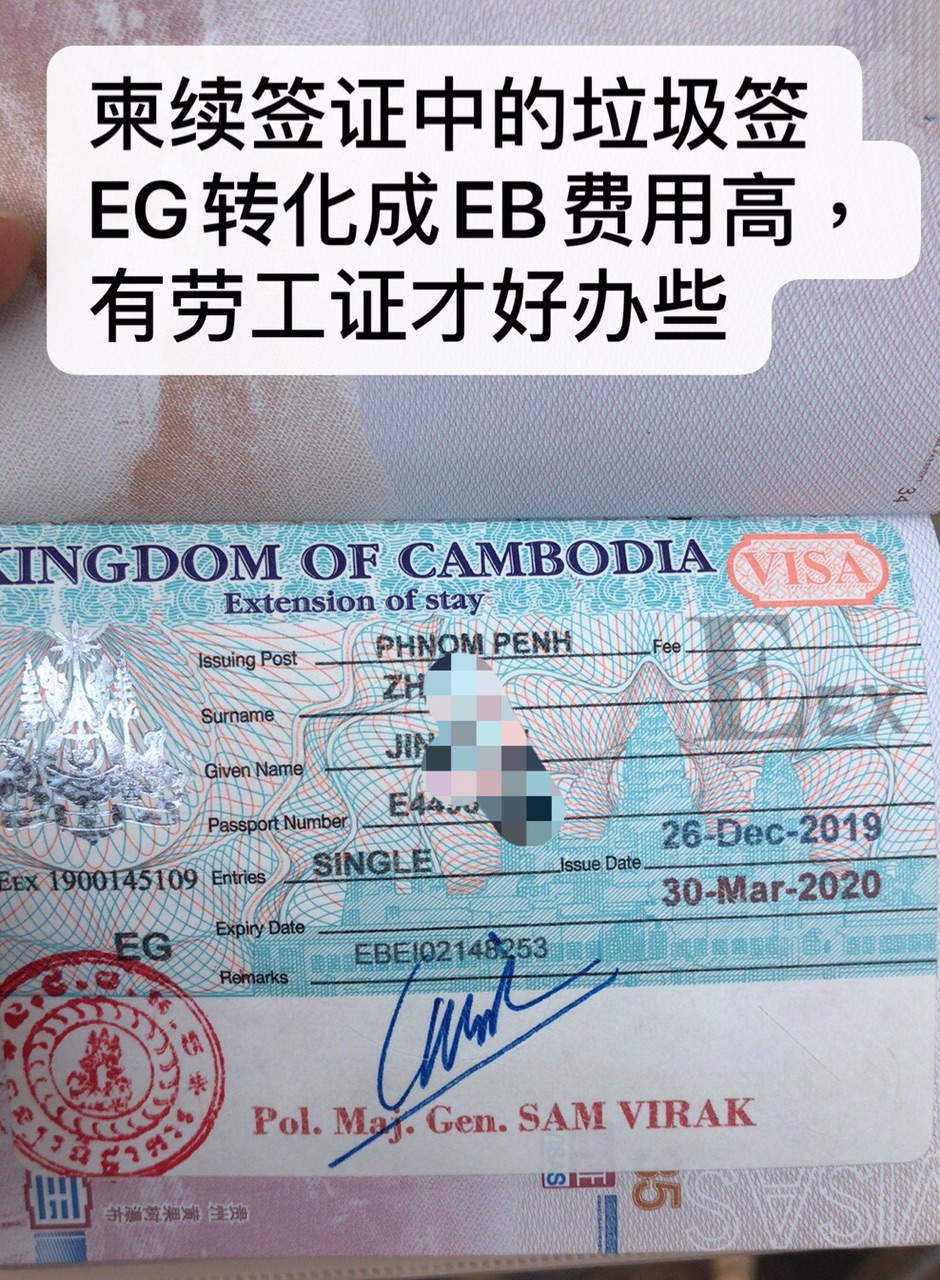- 柬埔寨商务签证(EB),适用于商务旅行者或将长期在柬埔寨工作的人。这种签证最长可延长一年。