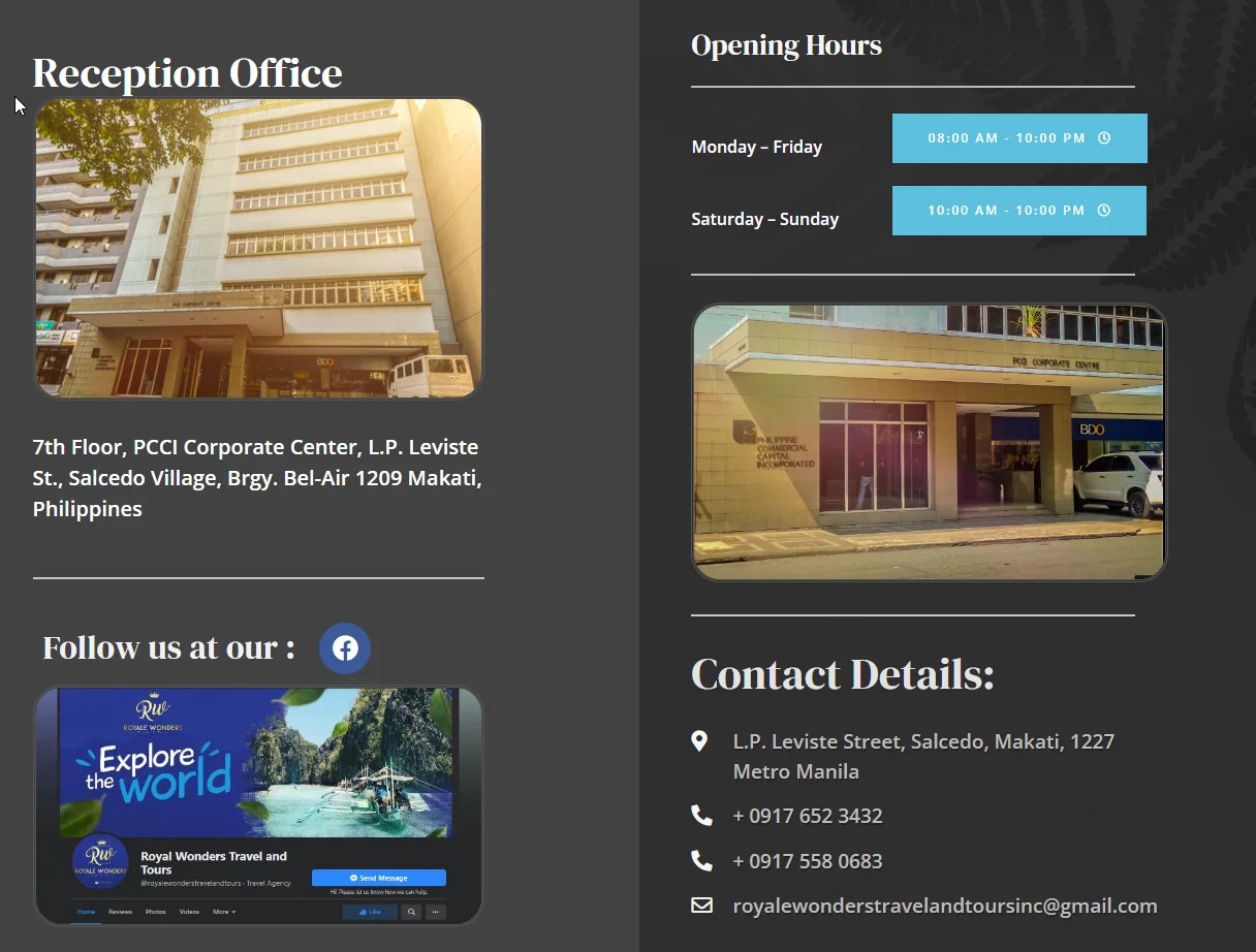 欢迎联系我们 索取菲律宾本地旅游宣传手册 制定员工出团旅游线路和获取报价https://www.facebook.com/royalewonderstravelandtours/